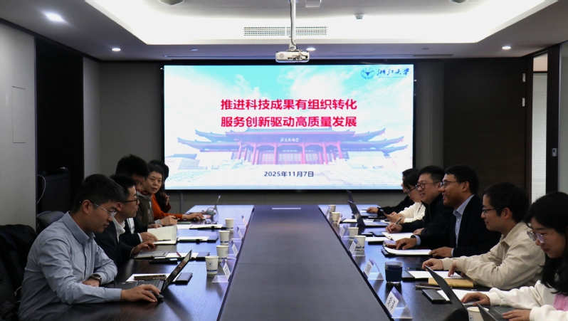 国振对复旦大学科研院一行的到访表示热烈欢迎。他指出,当前国家层面和高校系统将科技创新和科技成果转化置于战略高度,面对新一轮科技革命和产业变革深刻演进新态势,各高校在推动科技成果转化过程中面临诸多共性挑战。工研院作为浙江大学成果转化组织管理部门,正同步推进内设机构整合优化与成果转化制度规范建设,通过体制机制改革,完善合规性审查,打造“阳光企业”,并通过“概念验证-中试平台-企业创办”路径,做好科研成果从“实验室”到“货架”承托服务工作,打通成果转化的“最后一公里”。他表示,期待双方在成果转化工作方面交流借鉴,共谋转化创新路径。