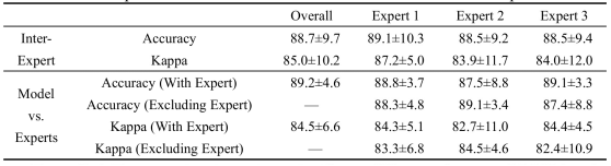 图3.专家一致性对比。该表格对比了LPSGM与三名资深睡眠专家在睡眠分期任务上的一致性表现。表格显示了专家间一致性(Inter-Expert)和模型与专家一致性(Model vs. Experts)的准确率和Kappa系数。统计检验结果显示LPSGM与专家间无显著差异(准确率p=0.74,Kappa p=0.60),且模型表现出更高的一致性(标准差更小)。