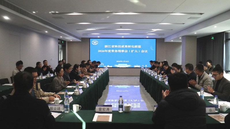 2026年1月16日,浙江省科技成果转化联盟2026年度常务理事会(扩大)会议在浙大紫金科创小镇圆满召开。会议由浙江省科技成果转化联盟主办,浙江大学工业技术转化研究院、浙江省科技评估和成果转化中心联合承办。浙江省科学技术厅成果处副处长卢顺平、浙江省科技评估和成果转化中心主任楼新明出席会议,浙大工研院副院长吕伟成主持会议。